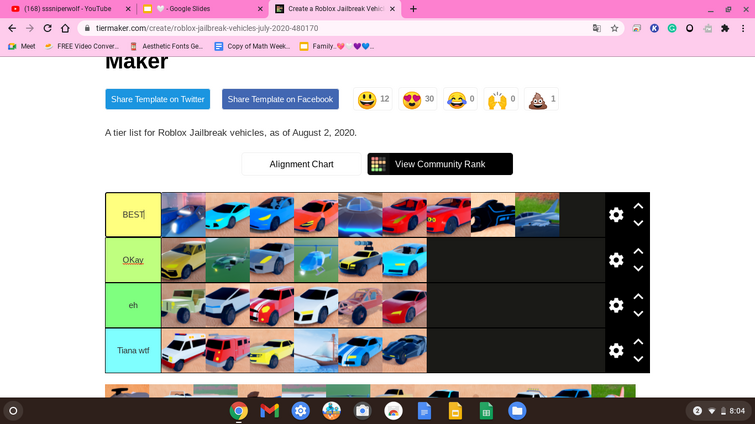 Roblox Jailbreak Vehicles August 2020 Tier List Community Rank Tiermaker from tiermaker.com Check spelling or type a new query. We did not find results for: Maybe you would like to learn more about one of these?